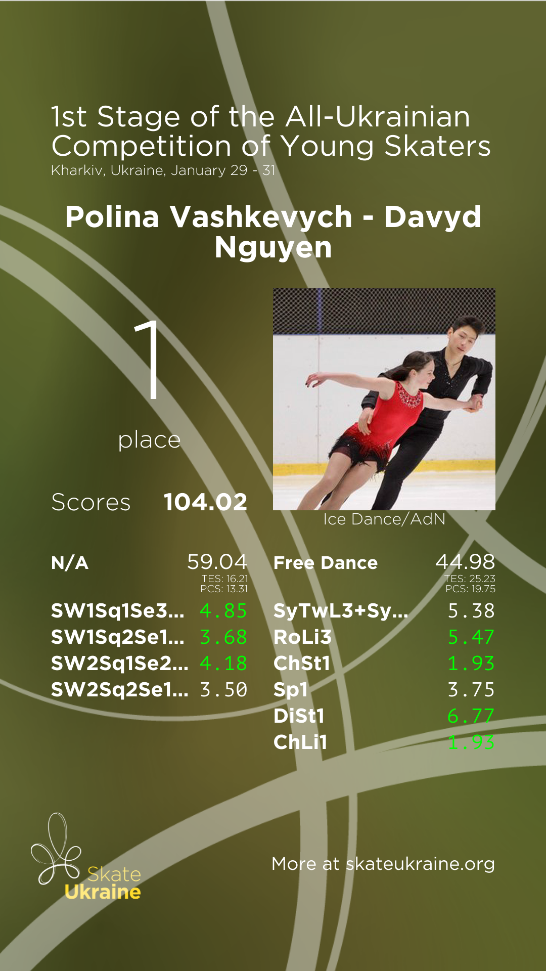 TES:13.52ComponentsPCS:5.48Free Dance19.07
