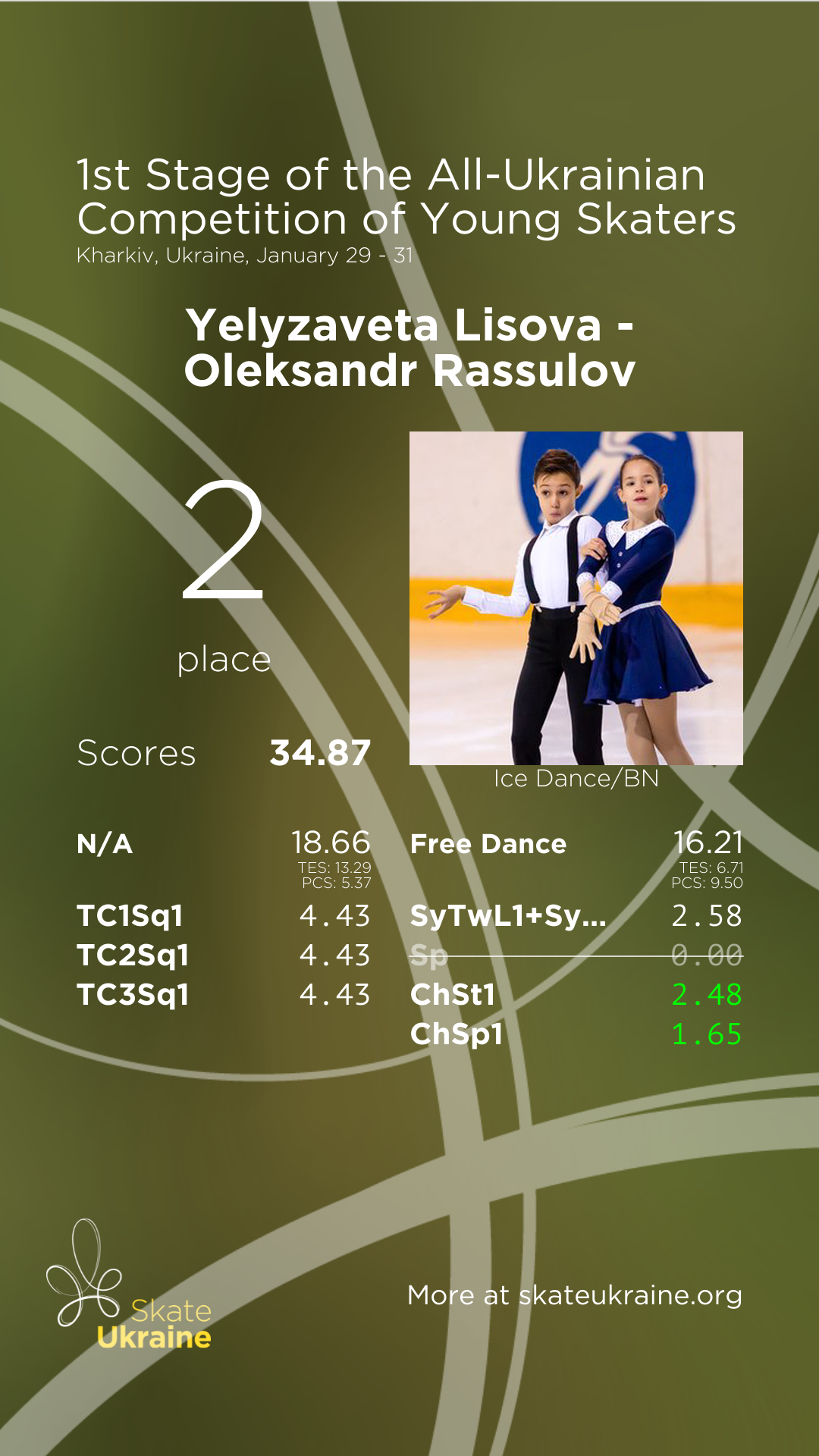 TES:13.29ComponentsPCS:5.37Free Dance16.21
