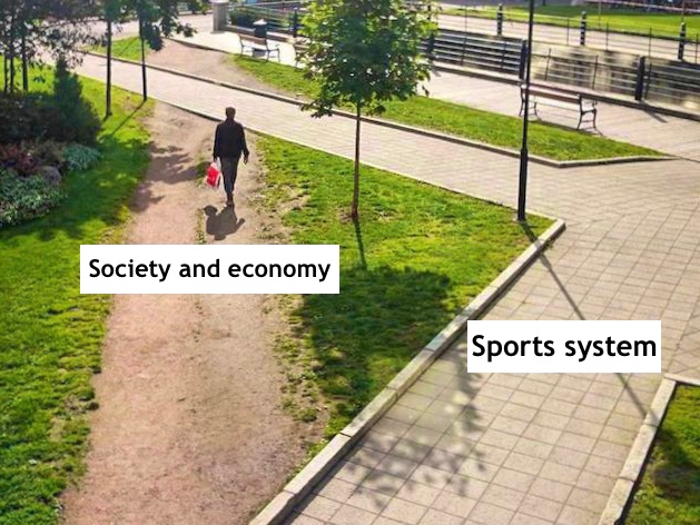 But the major issue this misfit produces is the broken sports economy. You see, the sports economy starts with people, who create supply and demand for sports services and goods, and the better formal system matches the existing interactions between people in the society, the healthier its economy is. The economy is that invisible hand that governs choices people and organizations make every day. It underpins people's incentives or lack thereof in sports, growth or decline of infrastructure, the landscape of coaching labor, demographics, and patterns of athletes' and coaches' migrations and everything else. The national sports system can't exist without a healthy economy that supports it. Figure skating is a particularly expensive sport discipline and depends on it even more.